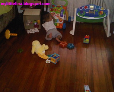 Crawling, I had been waiting for you to do this ever since you were slithering on the floors. It is milestone but it is also a handful :) As tiresome as it is, chasing you around as you crawl, I love it so much. That's what Mommy do for her baby.